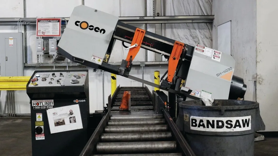 Allen concurs. “For areas like our tube cutting, we installed the Cosen band saws to gain that efficiency just because the saws cut very well. They cut quickly. They’re reliable. Their downtime is little to none.”