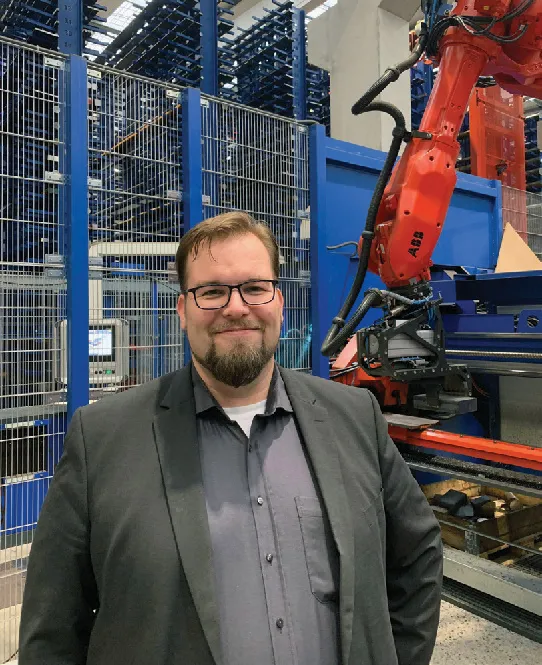 Marcel Finkernagel takes advantage of the new sawing center’s capabilites, including 1,500 shelves, a fully automatic production circular saw and one band saw.