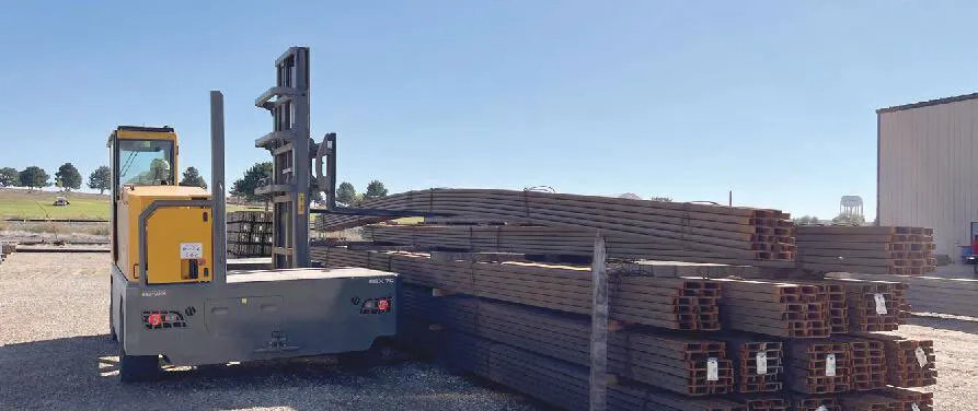 He also points out that the sideloader’s capabilities have eliminated handling steps. “When we’re bringing 40-foot material into the building, we can pick up the bundle, set it on the deck and drive right in through our standard warehouse doors.” Because the doors aren’t 40 feet wide, when using a standard forklift, the material had to be loaded on a trailer and pulled under the overhead crane.