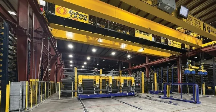 Such is the case at the Alro Steel facility in Pittsburgh, where an Expert Crane was installed in September 2025. The crane, equipped with Fehr automation, is part of a building expansion. “We were looking to increase our structural inventory capacity and improve how efficiently we could store and access that material,” says C. Levi VanSumeren, head of automation for Alro Steel.