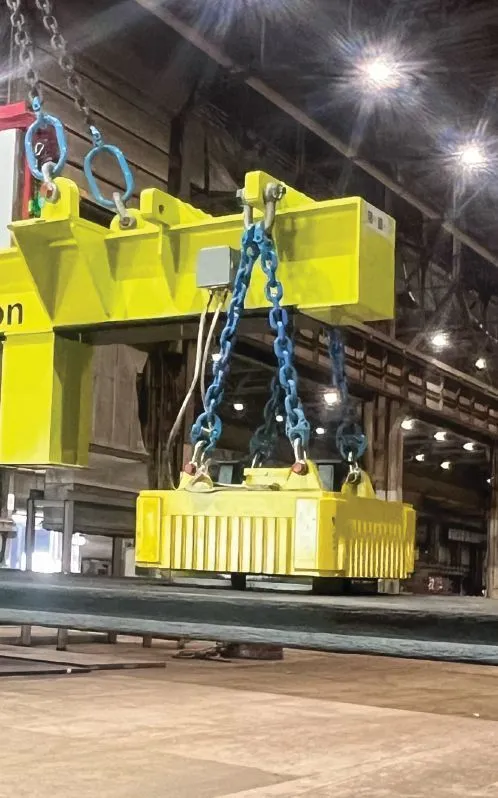 Here, too, the legacy lifting systems at the facility are not rated to handle plate that’s over 1,000 degrees. The ability to move plate earlier in the cooling process gives AHP an operational and strategic leg up. “A big benefit with the Magswitch system is in the safety and handling of hot material. The quicker we can move hot plate, the more productive we become,” adds Thompson.