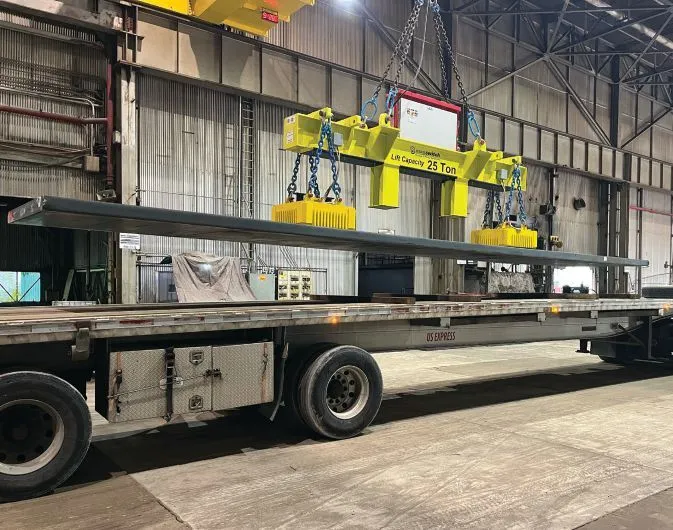“The thinner 2-inch gauge plate has a propensity to peel off the magnetic lifts we use for the thicker plate. The Magswitch [lift] resolves this issue with a spreader beam and rare earth magnets at each end of the beam,” says Thompson.