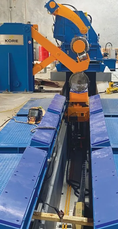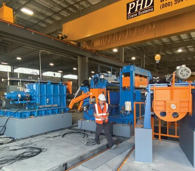 Margolin also credits JD Concrete Enterprise LLC, Erie, Michigan, for installing the 30-foot looping pit and foundations. “They were on time and on budget and tremendous to work with,” he says. The foundation was completed in August. It took two months to commission the sli er and “it is now mid-October and we are already producing coils for our customers.”